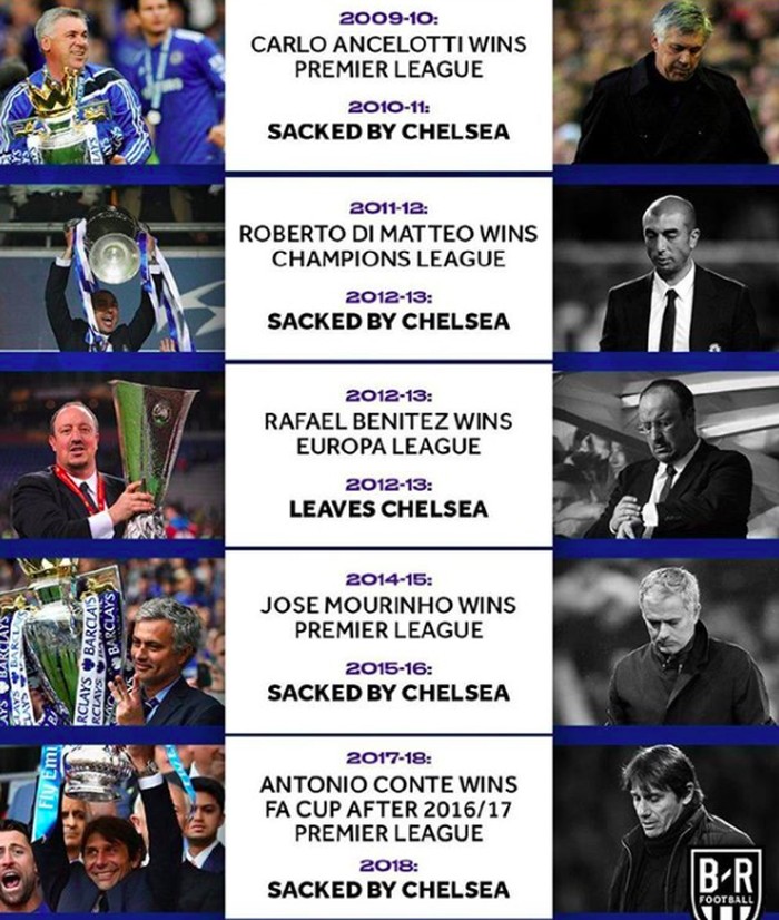 Namun memang mengantarkan Chelsea juara kadang berakibat kesialan bagi pelatihnya. Foto: istimewa