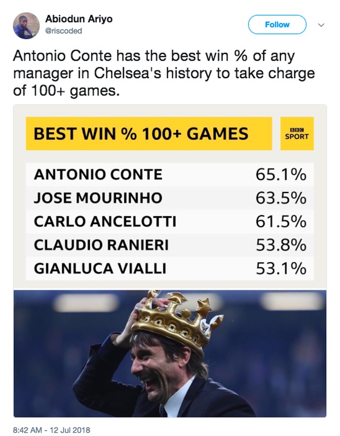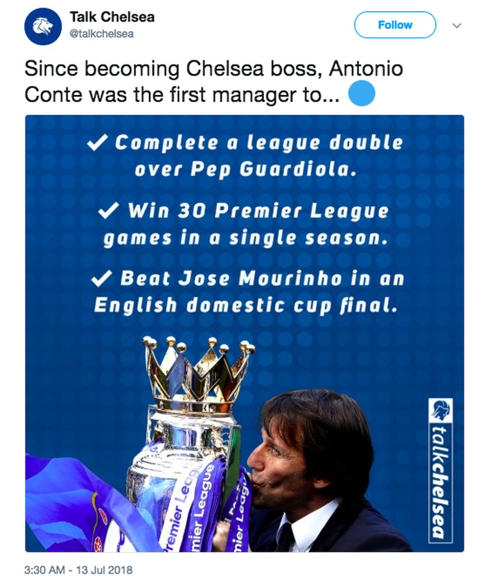 Sedikit gambaran mengenai apa yang sudah diraih Conte di Chelsea. Foto: istimewa