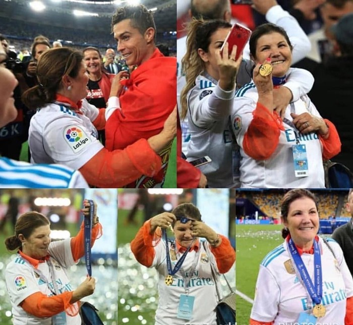 Momen kebersamaannya dengan Ronaldo saat Real Madrid juara Liga Champions 2017/2018 pun juga diunggahnya di Instagram. Foto: Instagram/doloresaveiroofficial