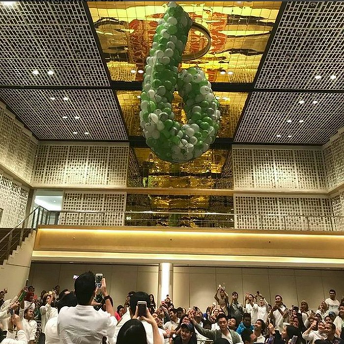 Tan bersama sang istri saat berada di kantor Grab Indonesia dengan gaya pakaian yang unik. (Foto: Instagram)