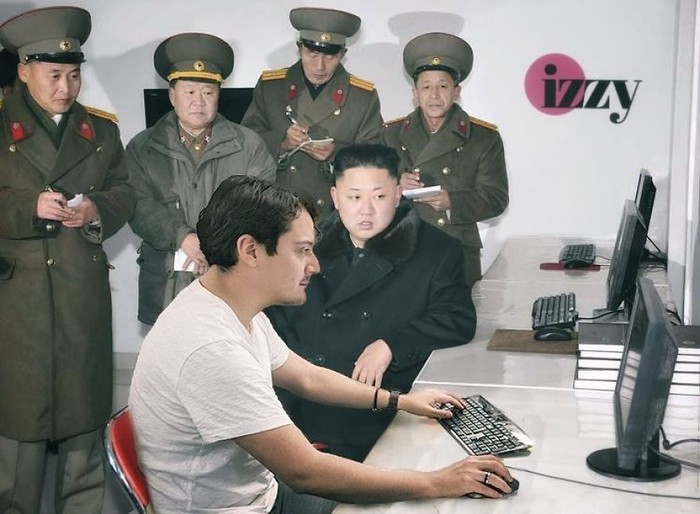 Jones mengedit fotonya sedang dilatih komputer oleh Pemimpin Korea Utara Kim Jong Un. Istimewa/Boredpanda.