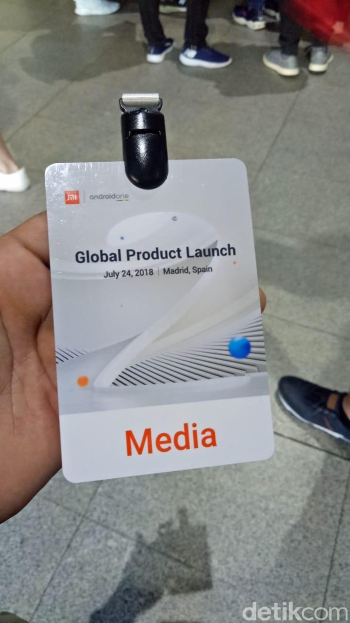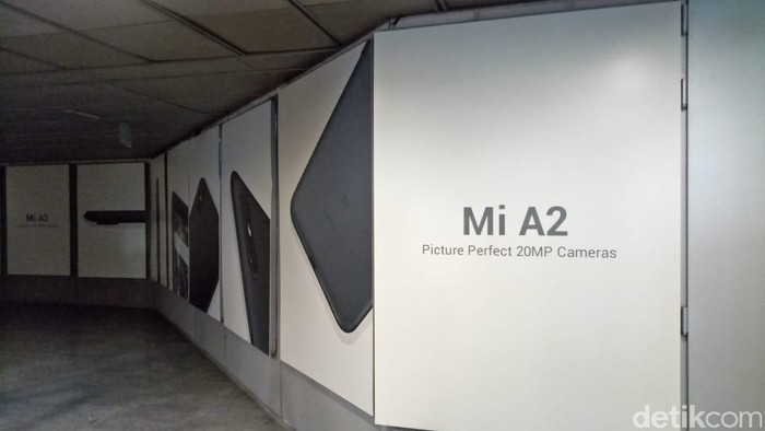 Tampak jelas ponsel yang akan diluncurkan adalah Xiaomi Mi A2. Foto: Dhani Irawan/detikcom