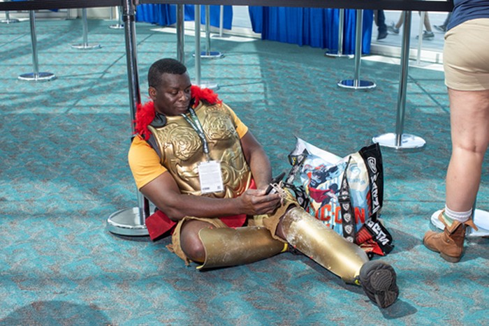 Prajurit Spartan kelelahan setelah seharian berkeliling di acara Comic-Con 2018. Foto: CNET