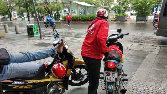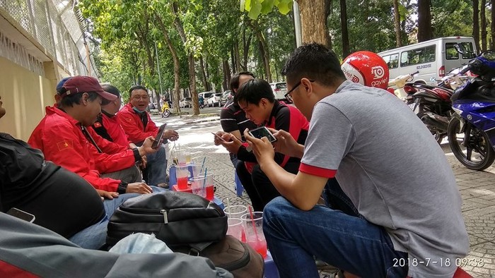 Seperti ini, tongkrongan driver Go-Viet saat menunggu orderan. Foto: Facebook CLB Go-Viet HCM