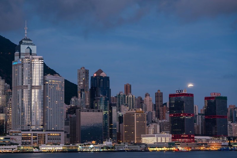 Jelang gerhana Bulan di tengah kota Hong Kong. Foto: Getty Images