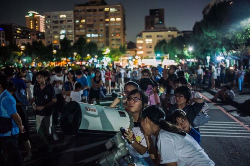 Antusiasme warga Taiwan menyongsong gerhana Bulan total di Sun Yat Sen Memorial Hall, Taipei. Foto: Getty Images