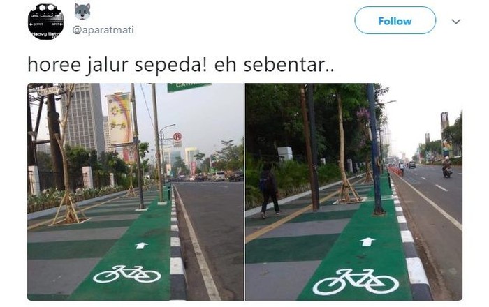 Selain itu, tiang yang ada di jalur sepeda ini pun juga jadi bahan perbincangan hangat. Foto: Twitter/aparatmati