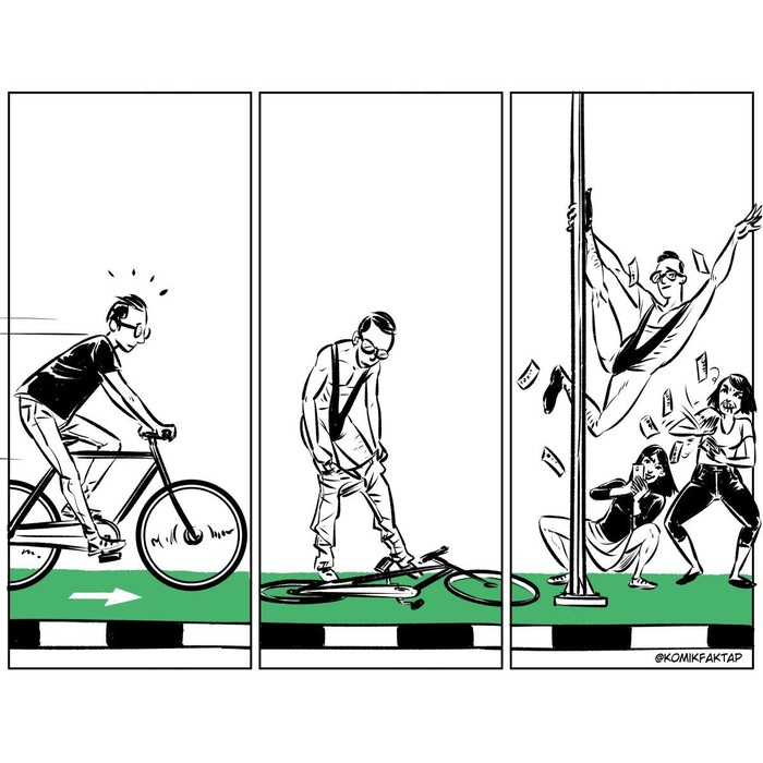 Yang mau penghasilan tambahan mungkin bisa coba pole dancing di tiang itu. Foto: Twitter/komikfaktap