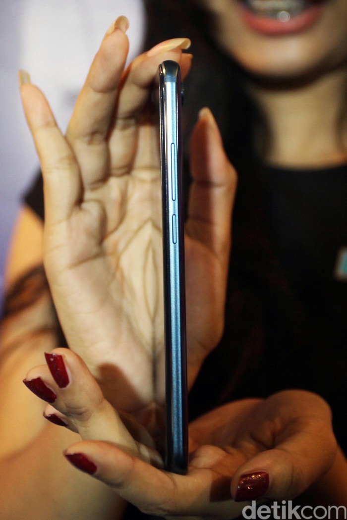 Desain layarnya memiliki notch serta tombol di bagian depan.