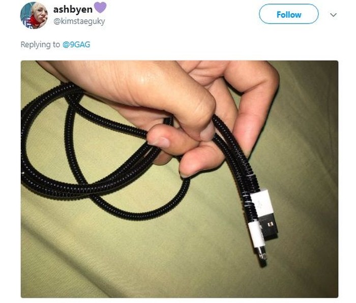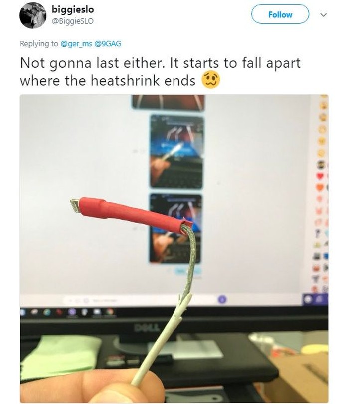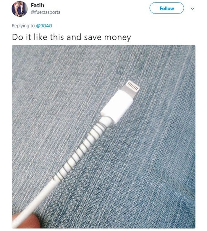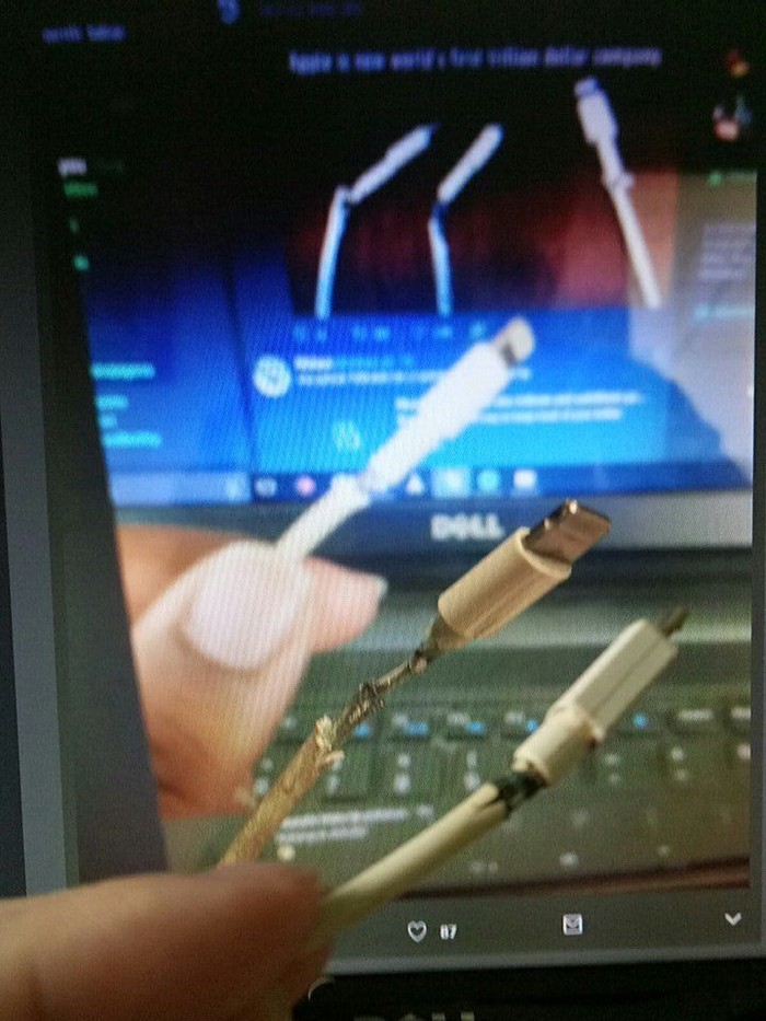 Banyak netizen yang membagikan kabel pengisi dayanya yang sudah terkoyak. Foto: Twitter