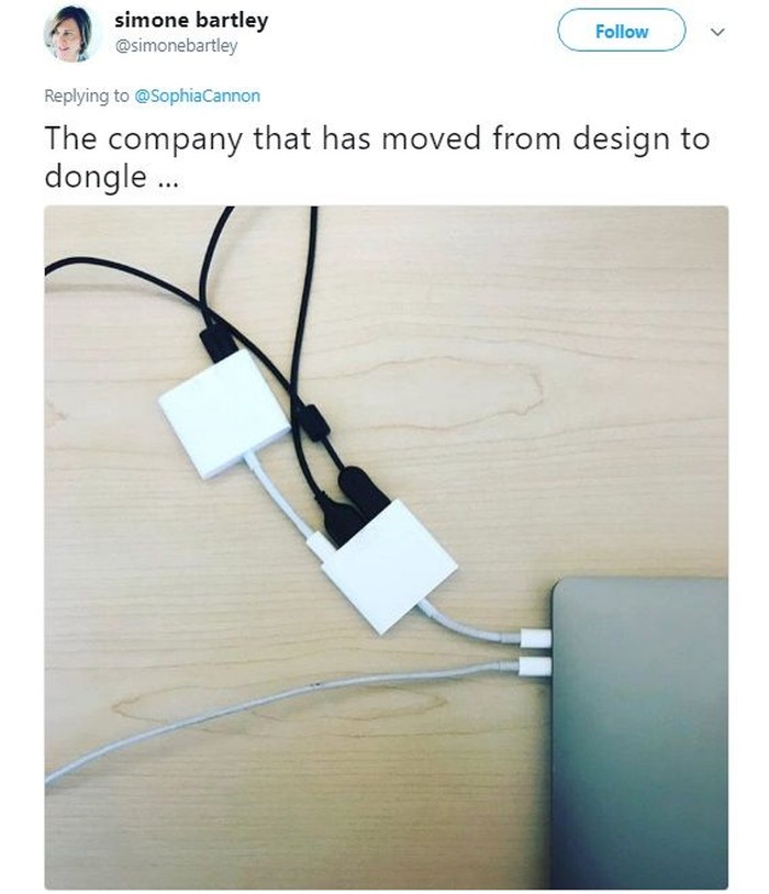 Niat untuk jadi perangkat yang lebih wireless malah berujung penggunaan banyak kabel. Foto: Twitter
