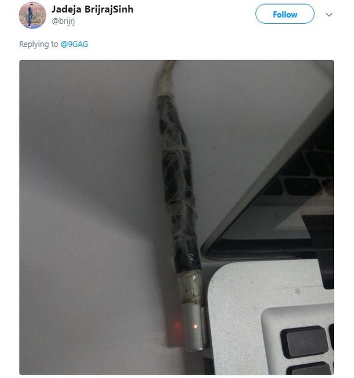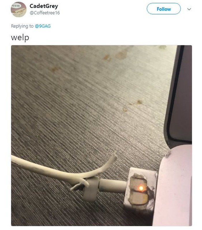 Charger MacBook pun juga mengalami hal serupa. Foto: Twitter