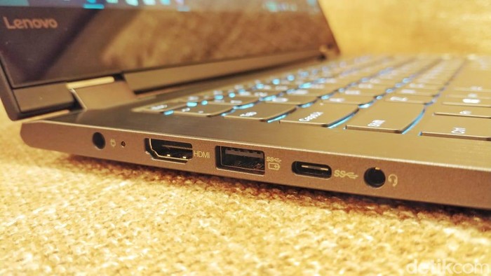 Laptop ini memiliki port USB type C, USB 3.0, HDMI, card reader dan audio jack 3,5 mm.Β Foto: Adi Fida Rahman/detikINET