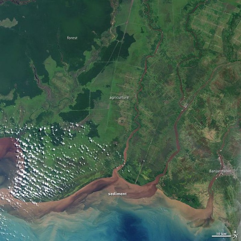 Penampakan sebagian pulau Kalimantan yang memukau dilihat jauh dari angkasa sana. Foto: ESA/NASA