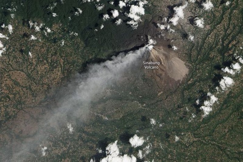 Penampakan erupsi Gunung Sinabung di Sumatera Utara. Foto: ESA/NASA