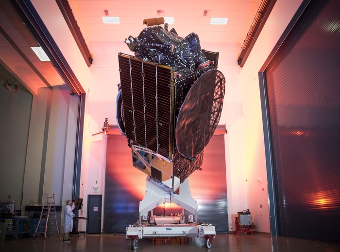 Pembuatan Satelit Merah Putih sendiri memakan waktu Β sekitar 2,5 tahun yang dimulai dari awal 2016. SSL berhasil mengerjakannya lebih cepat dari jadwal. Foto: SSL
