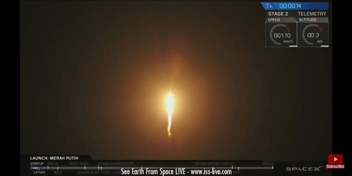 Tampak roket sudah berada di udara. Foto: YouTube/SpaceX