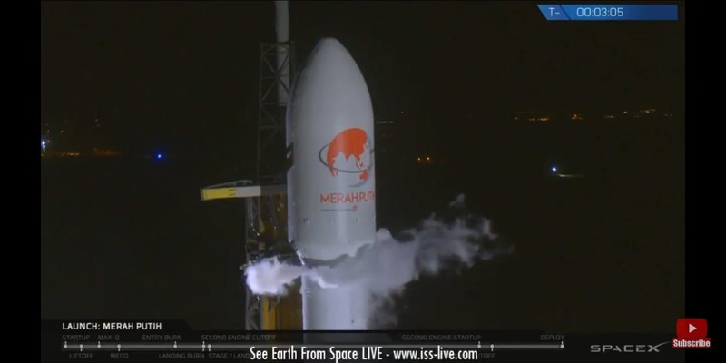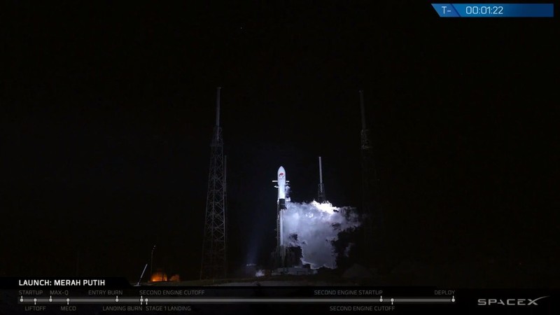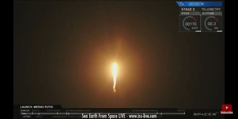 Terdapat logo satelit Merah Putih di fairing, atau penutup bagian atas roket yang membawa muatan. Foto: YouTube/SpaceX