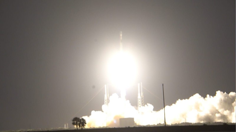 Tampak roket sudah berada di udara. Foto: YouTube/SpaceX