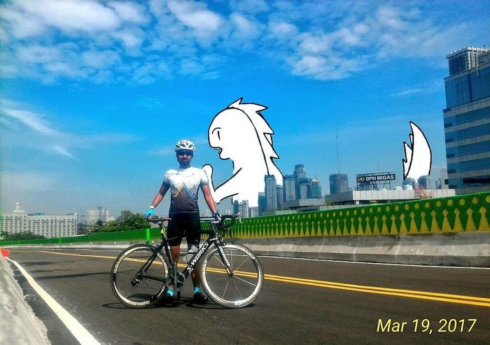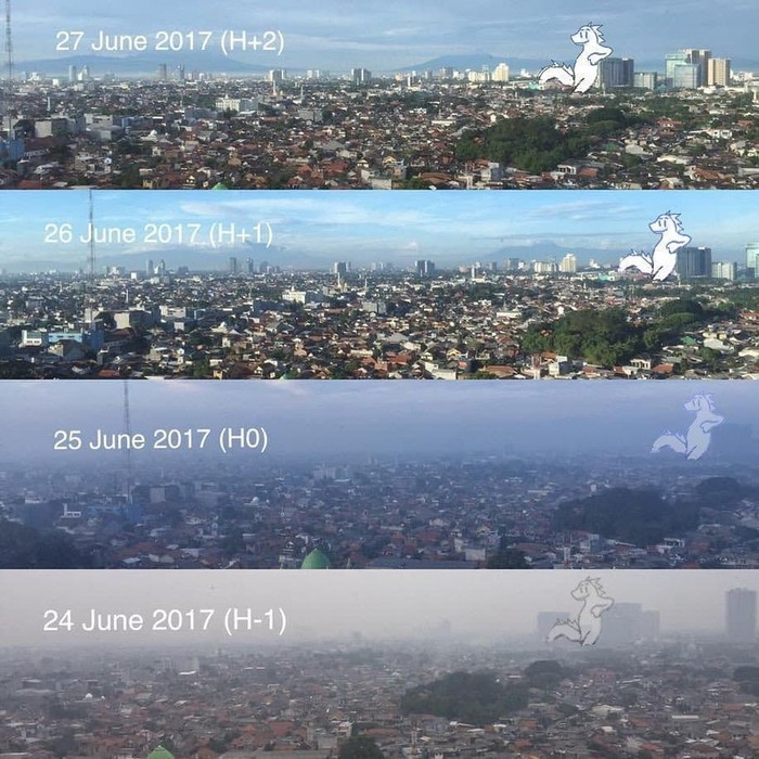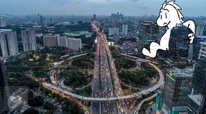 Nah berawal dari dirinya suka melihat postingan foto gedung dan jalanan dari atas. Lalu Mate berkhayal bagaimana bila dalam foto-foto tersebut muncul Godzilla. Foto: instagram.com/bangdinohey