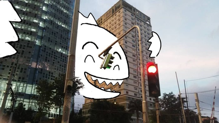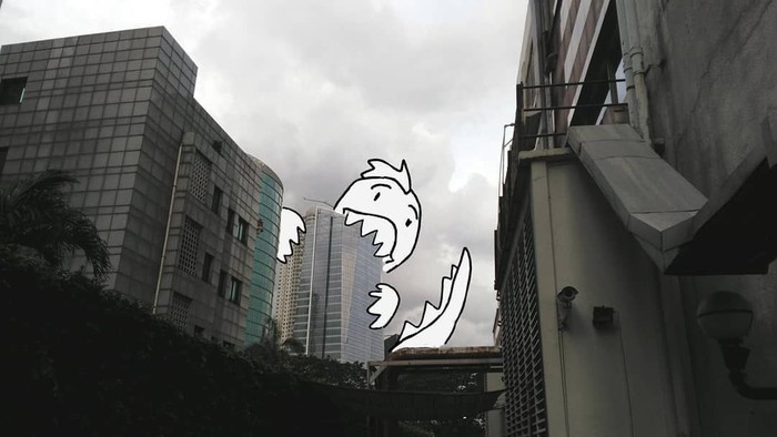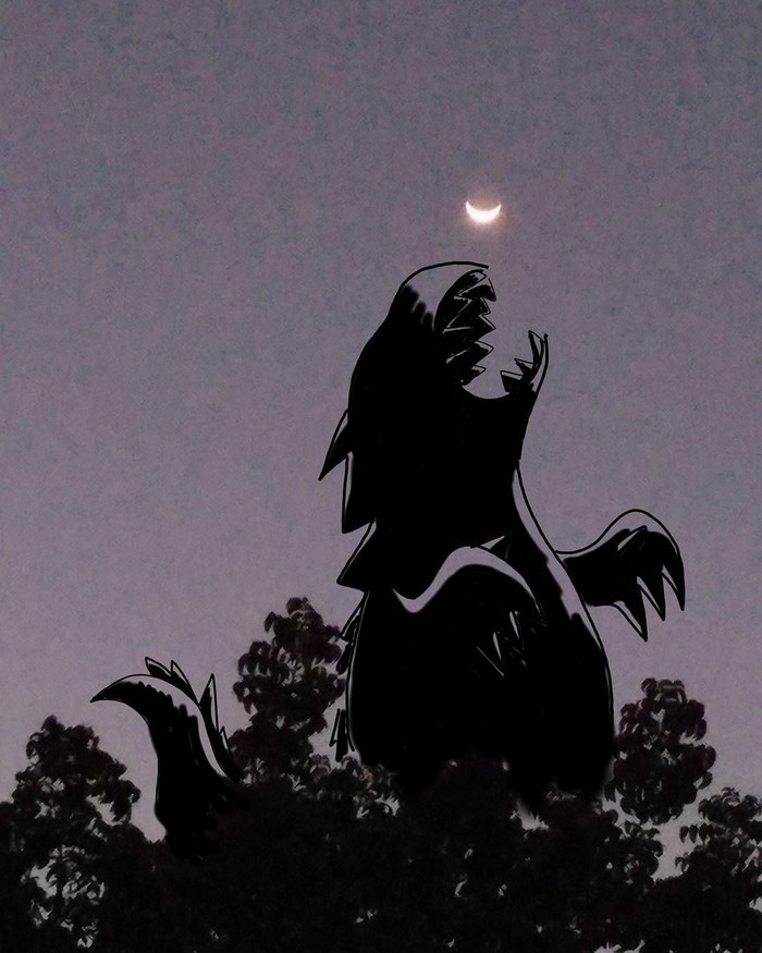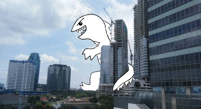 "Berhubung gambar di ponsel, pakai jari, jadilah Godzillanya kartun gitu," kata Mate saat dihubungi detikINET. Foto: instagram.com/bangdinohey