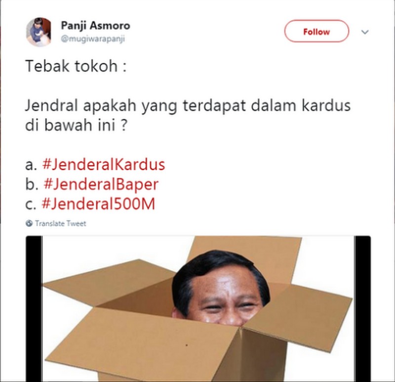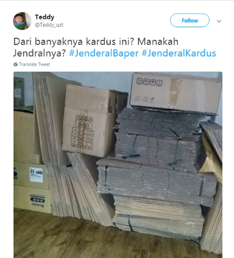 Mencari jendral di tumpukan kardus. (Foto: Twitter @Teddy_uzt)