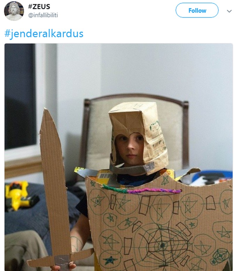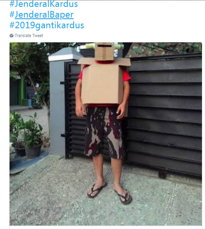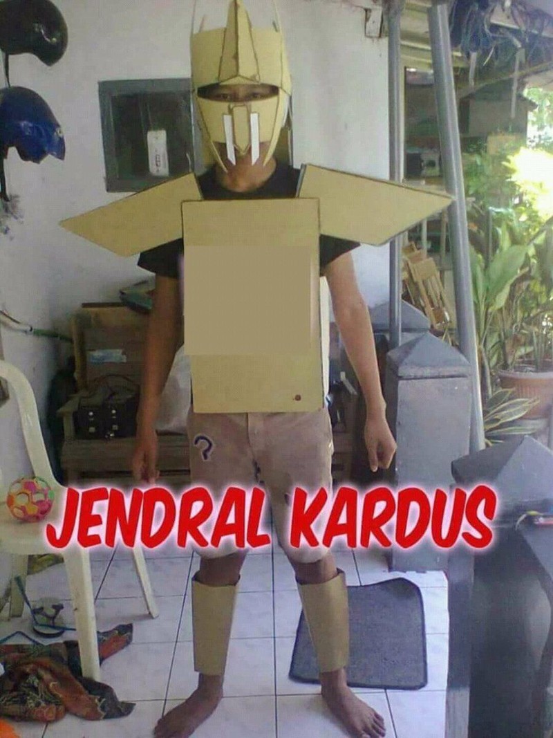 Anak kecil yang memakai kostum ini tidak luput dinamai Jendral Kardus. (Foto: Twitter @Infallibiliti)