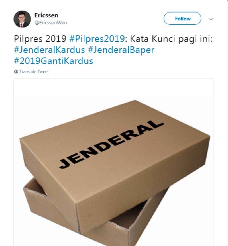 Giliran kardus ini yang dinamai Jendral. (Foto: Twitter @EricssenWen)