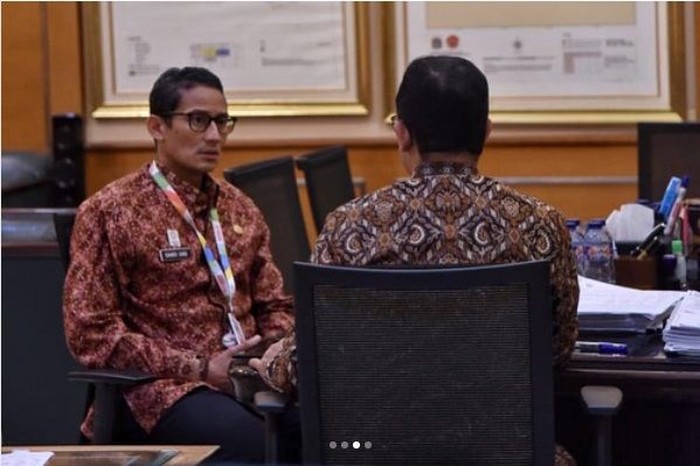Salah satunya ketika keduanya sama-sama mengunggah foto saat mereka berangkat kerja ke Balai Kota di hari pertama. Foto: Instagram/sandiuno
