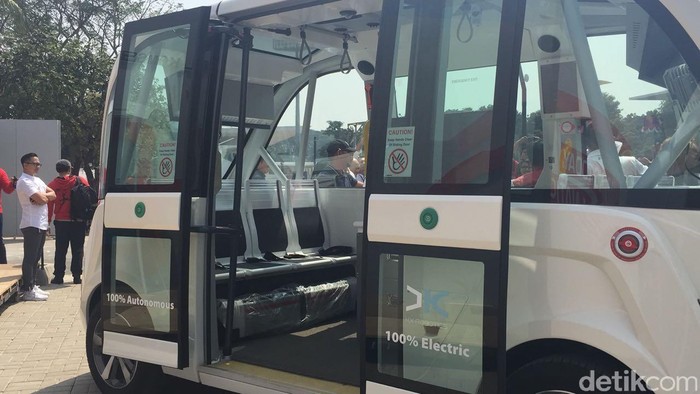 Keberadaan bus tanpa sopir ini tentunya menjadi daya tarik pengunjung selama perhelatan Asian Games 2018, khususnya di sekitaran GBK. Sebab, bus otonom sejauh ini hanya dijumpai di luar negeri yang masih mengembangkan teknologi tersebut. Foto: Agus Tri Haryanto/detikINET