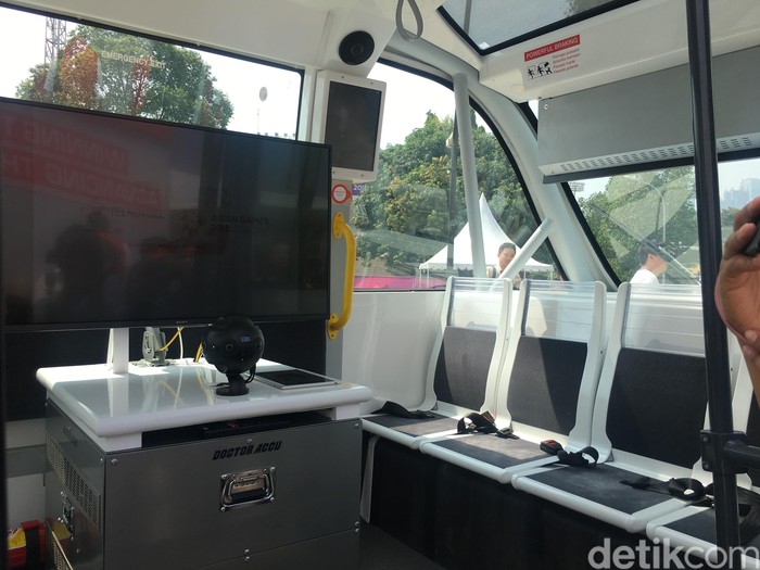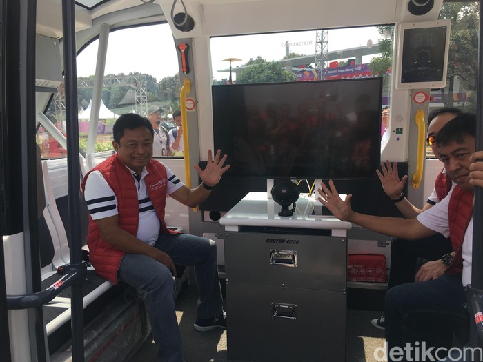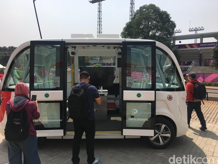 Bus tanpa sopir ini hanya akan berjalan di sekitaran Stadion Utama Gelora Bung Karno selamat perhelatan Asian Games. (Foto: detikINET/Agus Tri Haryanto)