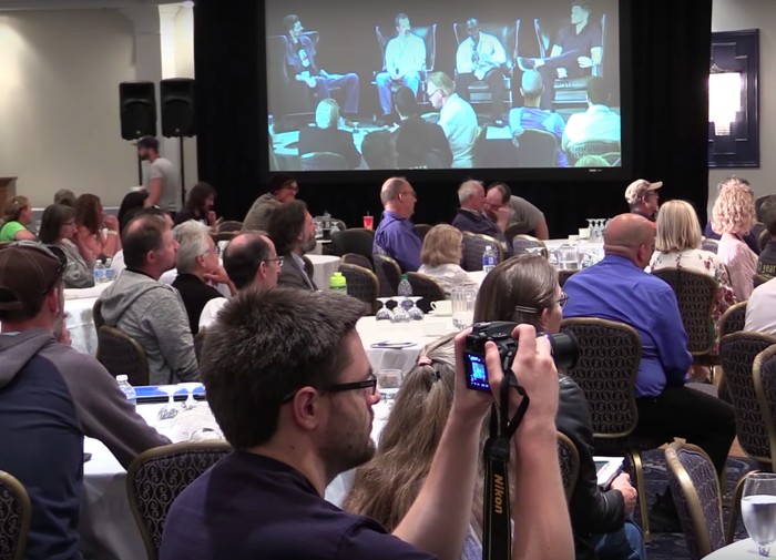 Berbagai sesi diadakan dengan semua tema mendiskusikan keyakinan bahwa Bumi itu datar. Foto: Edmonton Journal