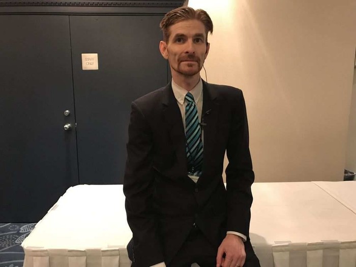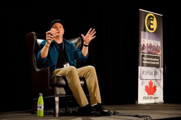 Pembicara lain adalah YouTuber bernama Matt Long. Matt meyakini Bumi berbentuk seperti piringan sesuai keyakinan agamanya. Foto: Edmonton Journal