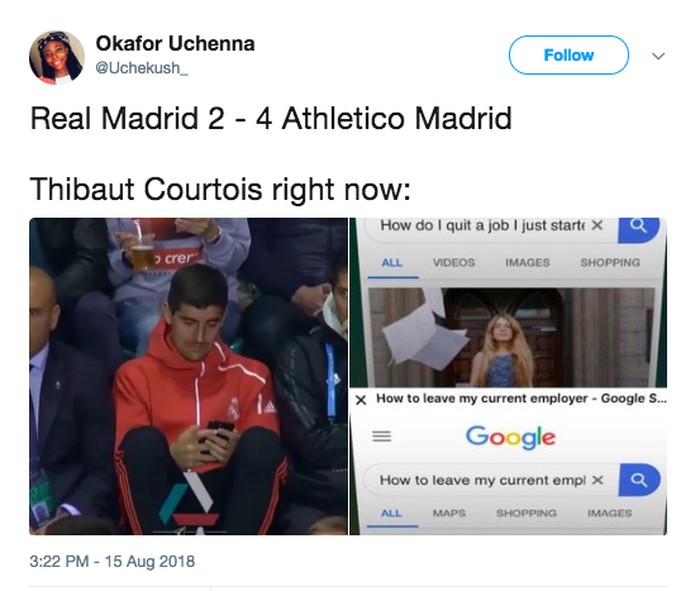 Real Madrid menyerah 2-4 dari tangan Atletico Madrid dalam ajang Piala Super Eropa. Meme kocak pun langsung berbebaran.