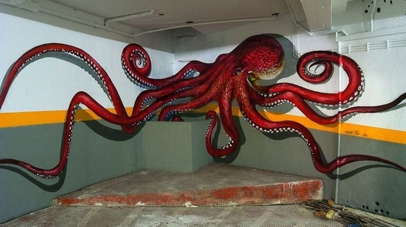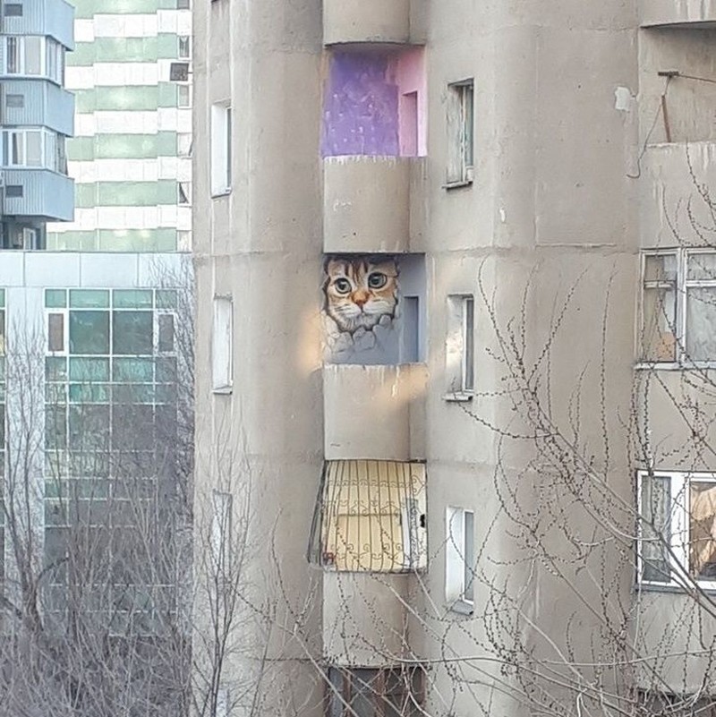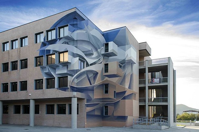 Gedung ini memiliki permukaan yang datar, tapi jadi berbeda berkat lukisan efek 3 dimensi. (Foto: Brightside)