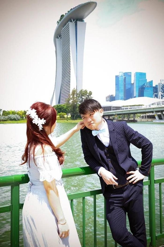 Pasangan asal Singapura menjadi viral lantaran membagikan hasil foto di hari pernikahannya di Facebook. Foto: Facebook/Ivan Tan