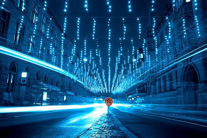 Lampu jalanan yang menghasilkan cahaya cahaya biru. Foto: bored panda