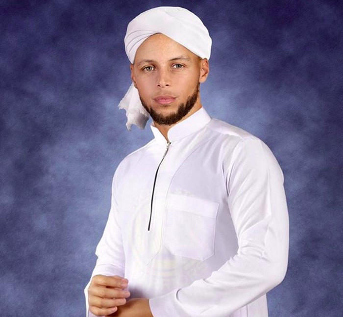 Agan Harahap sepertinya menyukai basket. Terlihat beberapa 'korban' editannya adalah para pemain basket. Yang ini adalah pemain basket Amerika Serikat Stephen Curry yang diubah Agan berpenampilan mengenakan jubah dan sorban. Foto: Instagram @aganharahap