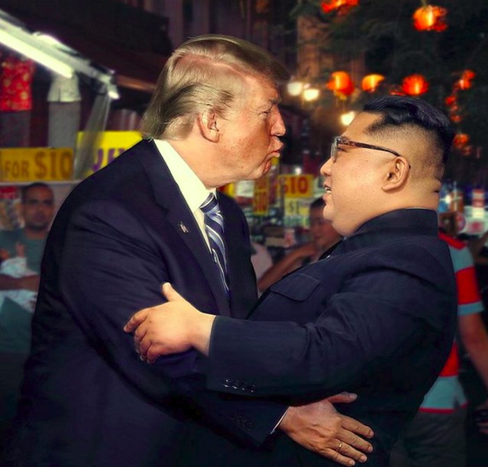 Presiden AS Donald Trump dan Pemimpin Korea Utara Kim Jong Un tampak akrab dan mesra. Foto: Instagram @aganharahap