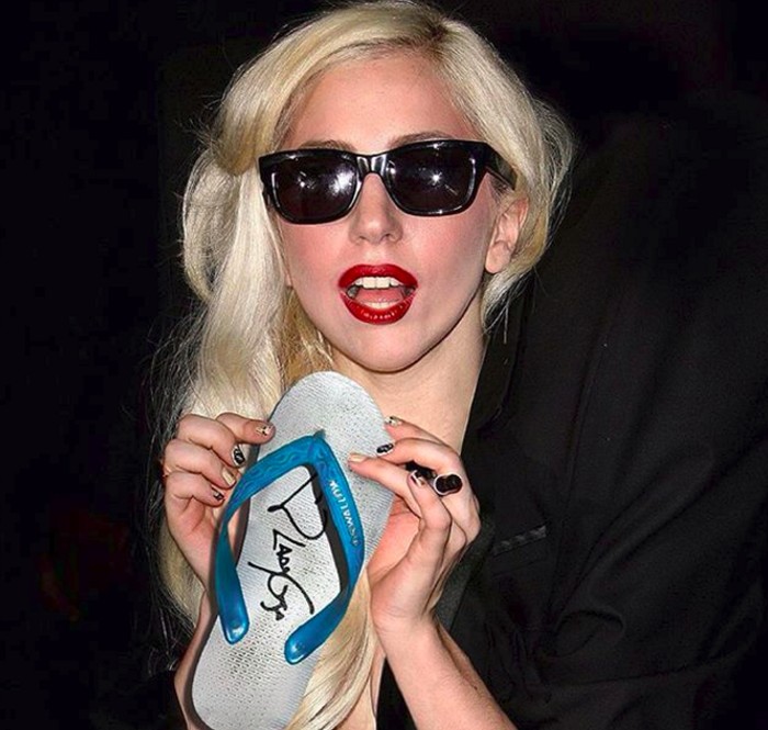 Siapa mau? Sendal jepit dengan tanda tangan Lady Gaga! Foto: Instagram @aganharahap