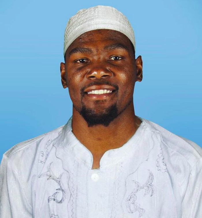 Pemain basket Amerika Serikat Kevin Durant dieditnya sehingga terlihat mengenakan peci dan baju koko. Foto: Instagram @aganharahap