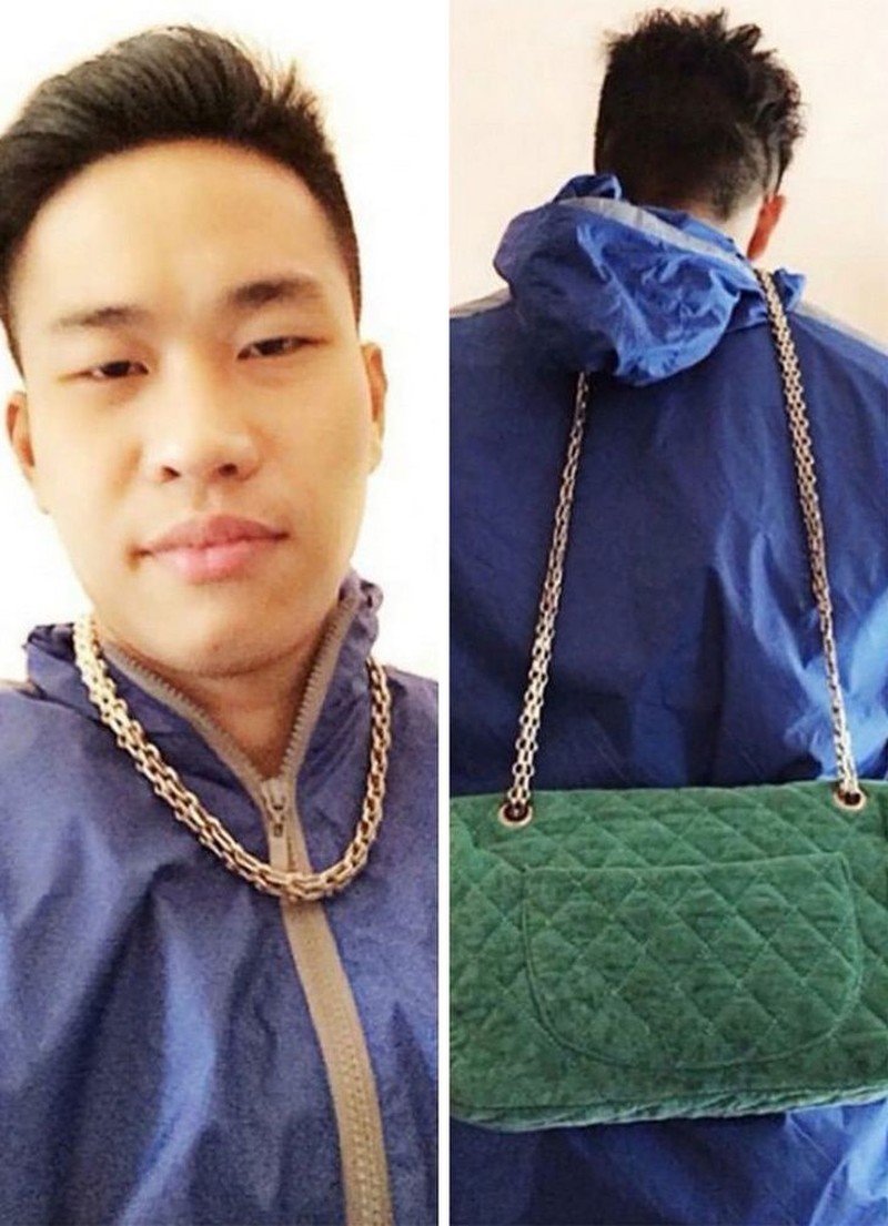 Kalungnya ternyata dari rantai tas. Foto: bored panda