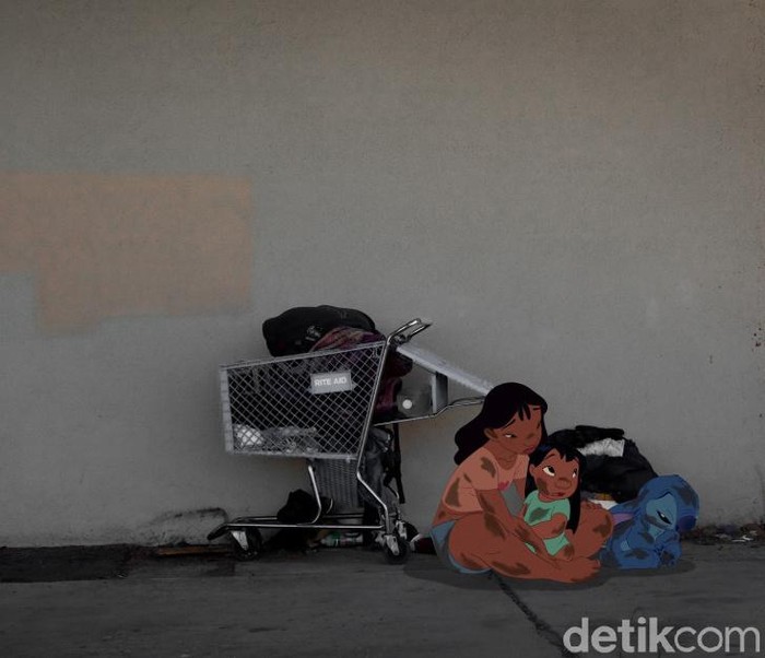 Seniman digital bernama Jeff Hong coba menampilkan potret kerusakan alam yang terjadi di dunia ini. Dia menggabungkan karakter disney dengan foto kondisi nyata.
