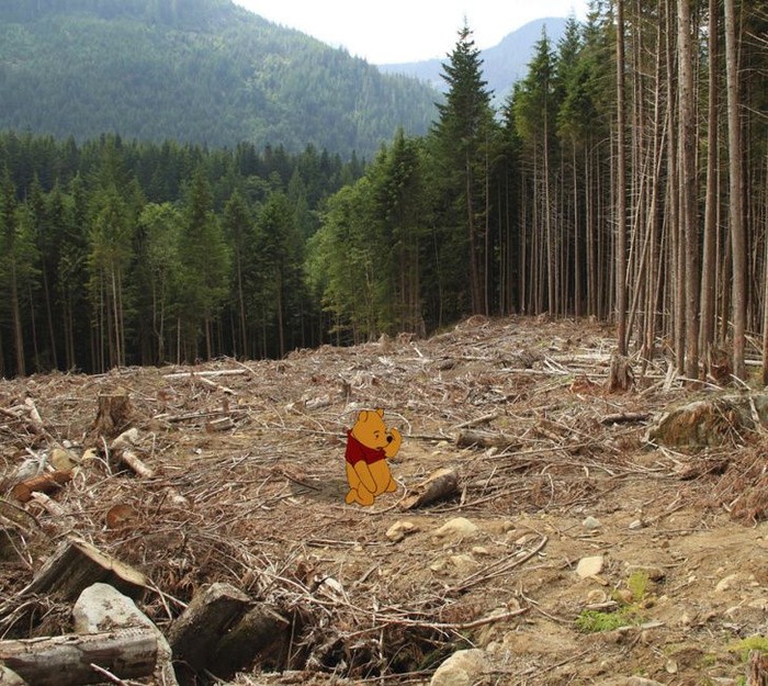 Pooh dan hutan yang mulai gundul. Foto: disneyunhappilyeverafter.tumblr.com