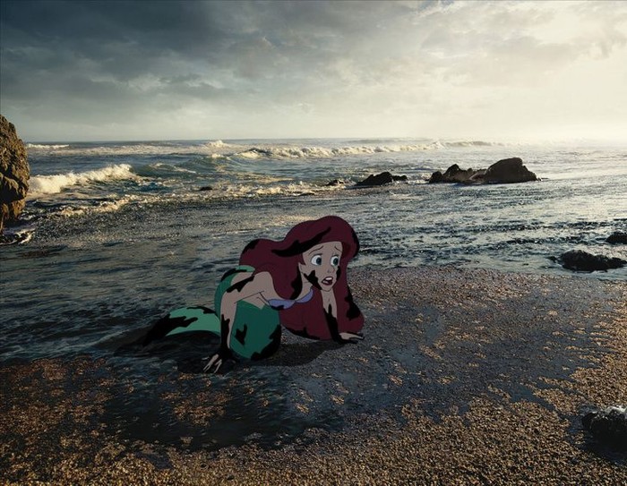 Ariel berada di pantai yang berminyak. Foto: disneyunhappilyeverafter.tumblr.com