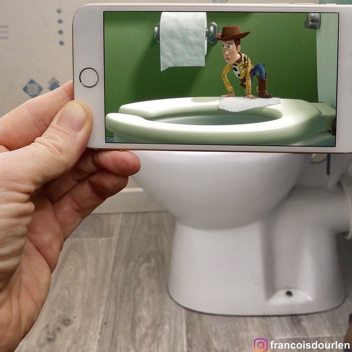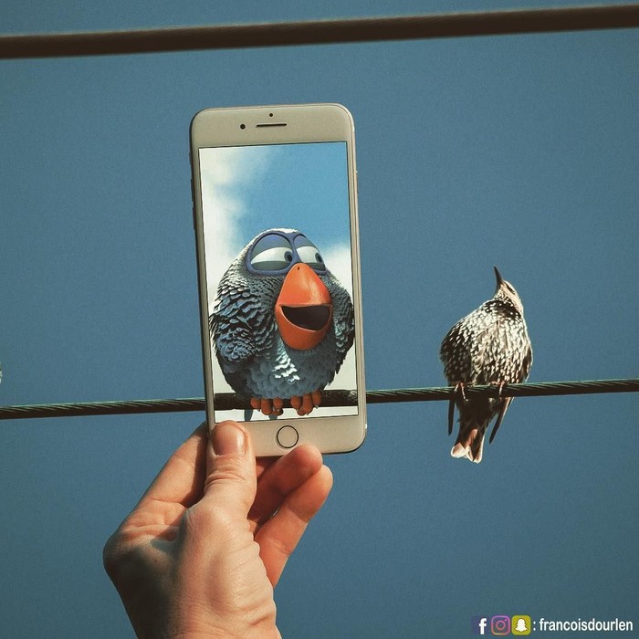 Tapi dia tidak menemukan cara yang tepat untuk menuangkannya.Foto: instagram.com/francoisdourlen/Β Lalu dia coab bercanda dengan temannya dengan mengganti patung Napoleon di Cherbourg dengan gambar kuda poni kecil di iPhone, kemudian dia foto. Foto: instagram.com/francoisdourlen/Β