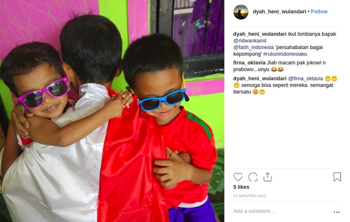 Kebanyakan foto anak-anak kecil yang memperagakan ulang foto Jokowi dan Prabowo. Hasilnya bikin gemas. (Foto: Instagram)