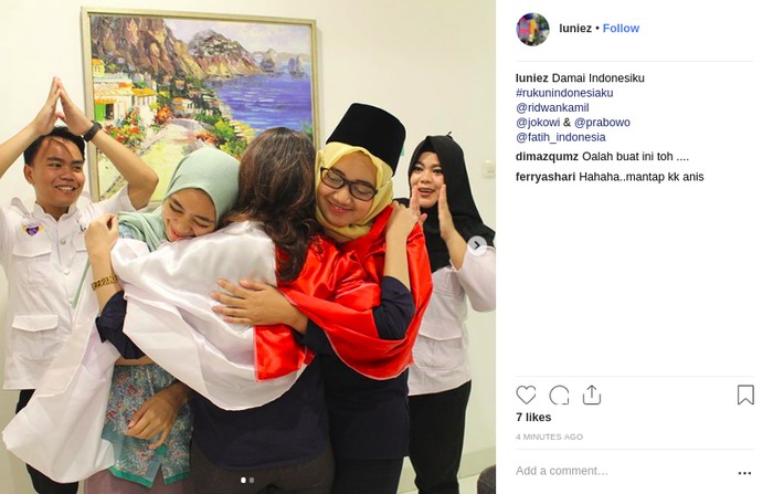 Kaum hawa pun turut meramaikan pose foto Jokowi Prabowo. (Foto: Instagram)