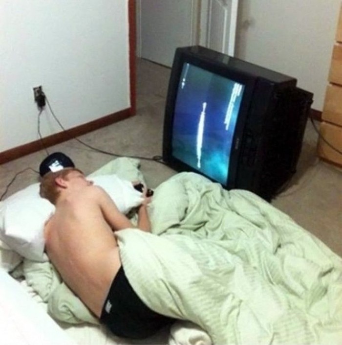 Gak ada remote, tongkat pun jadi. (Foto: Brightside)