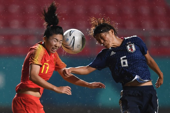 Pria berusia 54 tahun ingin memberikan dukungan langsung pada timnas China. Sayangnya hasilnya kurang memuaskan, mereka berhasil ditaklukkan oleh timnas Jepang dengan skor 0-1. Foto: Zabur Karuru/ANTARA FOTO/INASGOC